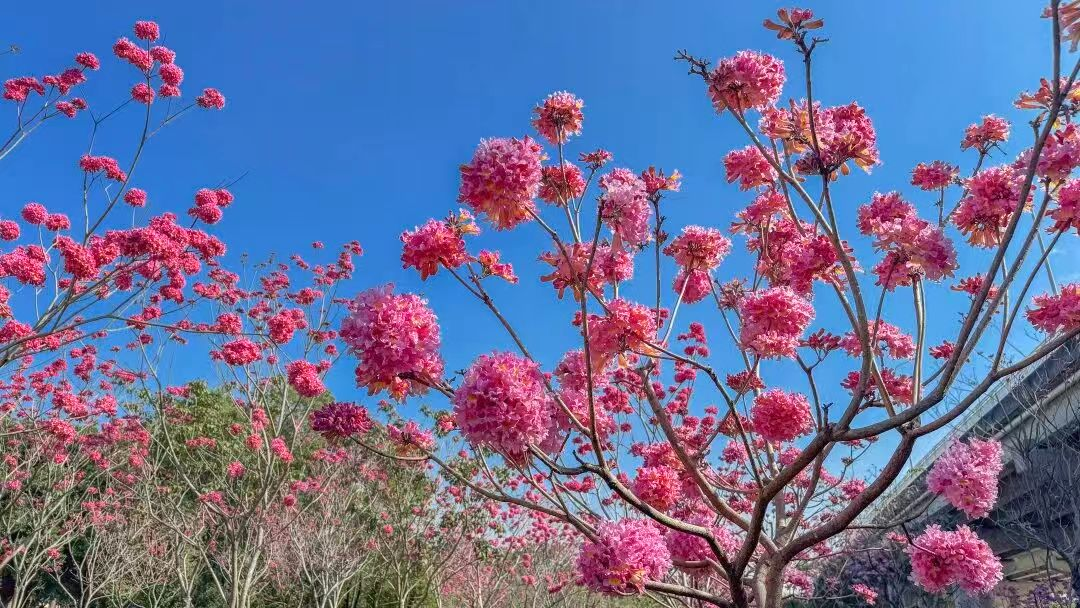 ▲华南农业大学 宫粉紫荆和黄花风铃木